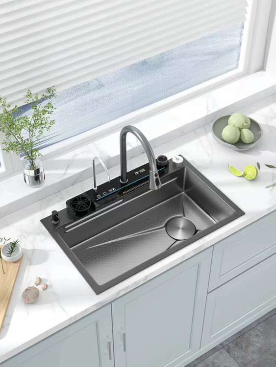 سینک ظرفشویی آبشاری مشکی مدل پیانویی 3 کلید جدید برند هایشینگ اصل