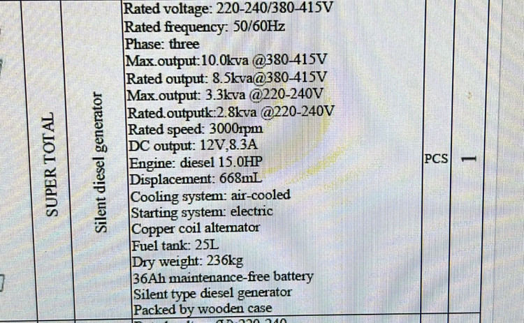TP2100003EP TOTAL SILENT DIESEL 380V GENERATOR 10KVA