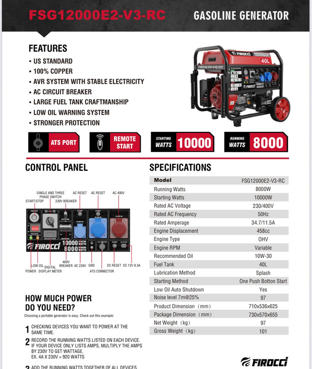موتور برق 8/3 کیلو وات ۳ فاز فیروکسی استارت مدل FSG12000E2-V3