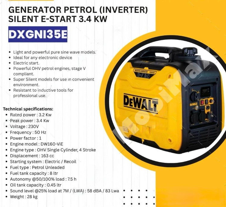 موتور برق اینورتر سایلنت ۳/۴ کیلو وات اصل دیوالت مدل DXGNI35E 3400W